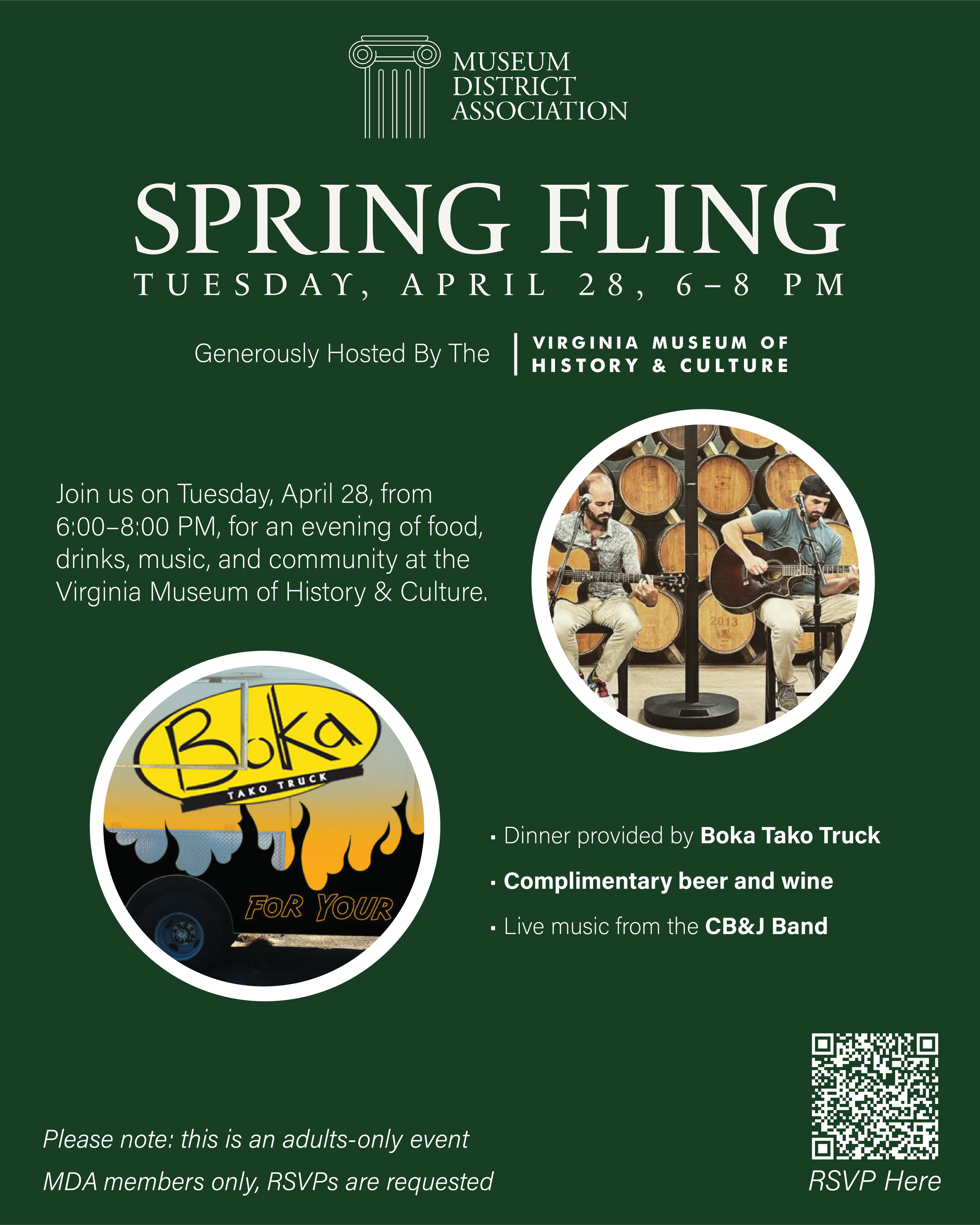 One of the Museum District Association's most anticipated events, Spring Fling 2023 will take place on Friday, April 14, from 6:00–8:00 p.m. at the Virginia Museum of History and Culture. The MDA board of directors is excited to bring this event to our members at such an exceptional venue—to which we will have full and exclusive access. Food, drink, live music, and the company of friends and neighbors all point to a memorable evening.